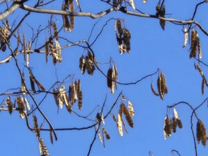 お写真は、冬の園庭です。園庭の冬桜が、満開です。ねむの木はさやが垂れ下がり、風が吹くとさやの中の種がカラカラなります。園庭で青い葉をつけているのは、ミモザの木だけになってしまいました。