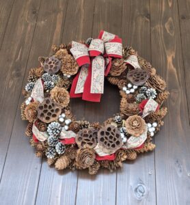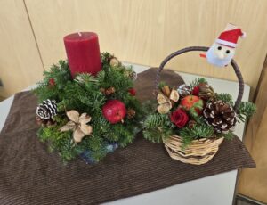 お写真は、学園西側道路沿い通称『かぜのみち』の大きなクリスマスリースとツリー、幼稚園ホールのツリーとクリブ、クリスマスアレンジメントは、希望者の保護者の方々と新入園の保護者の方々、卒園児の母でフラワーアレンジメントの先生と、楽しく作りました。